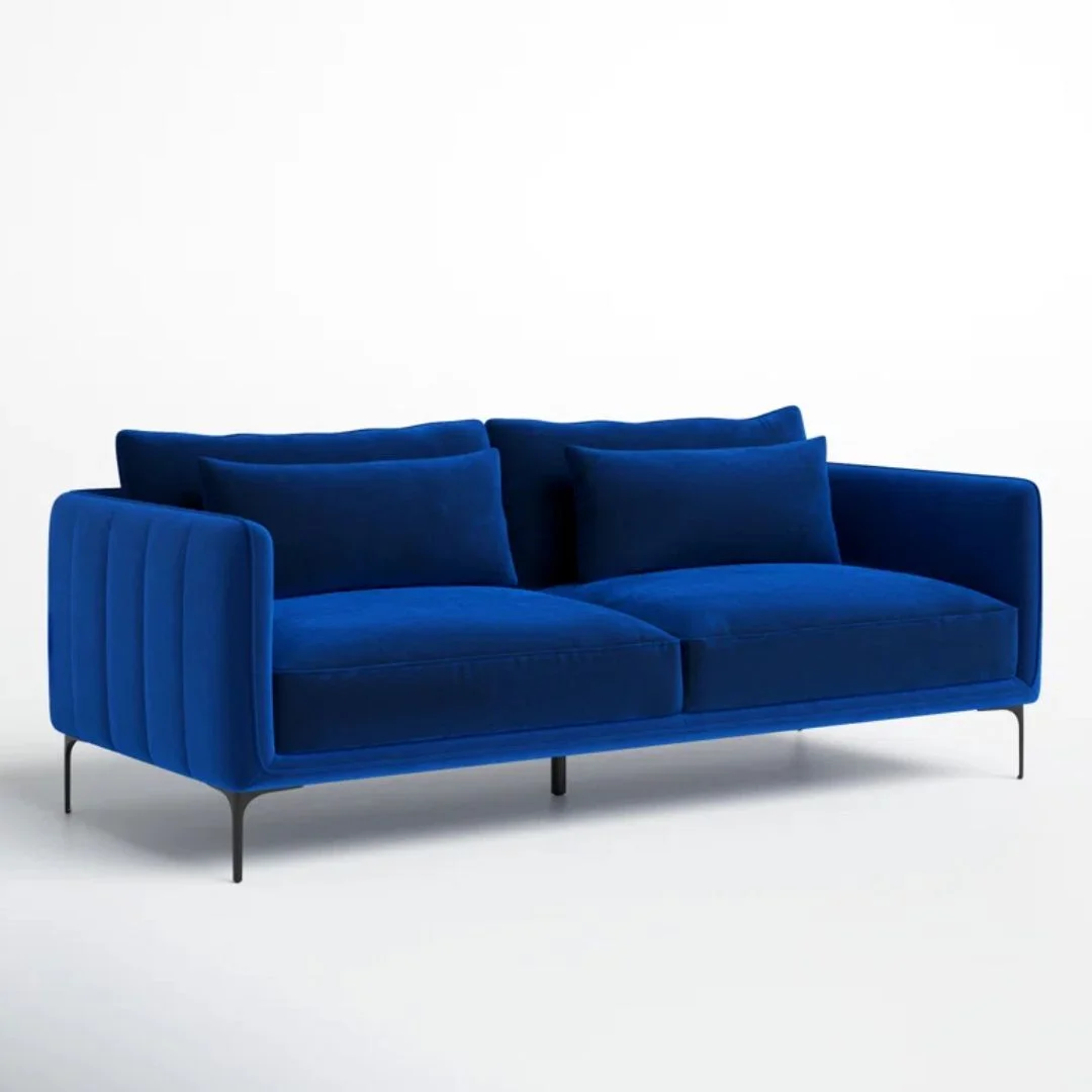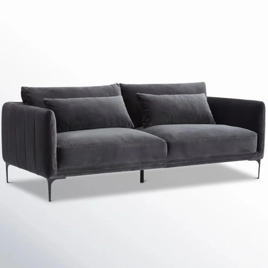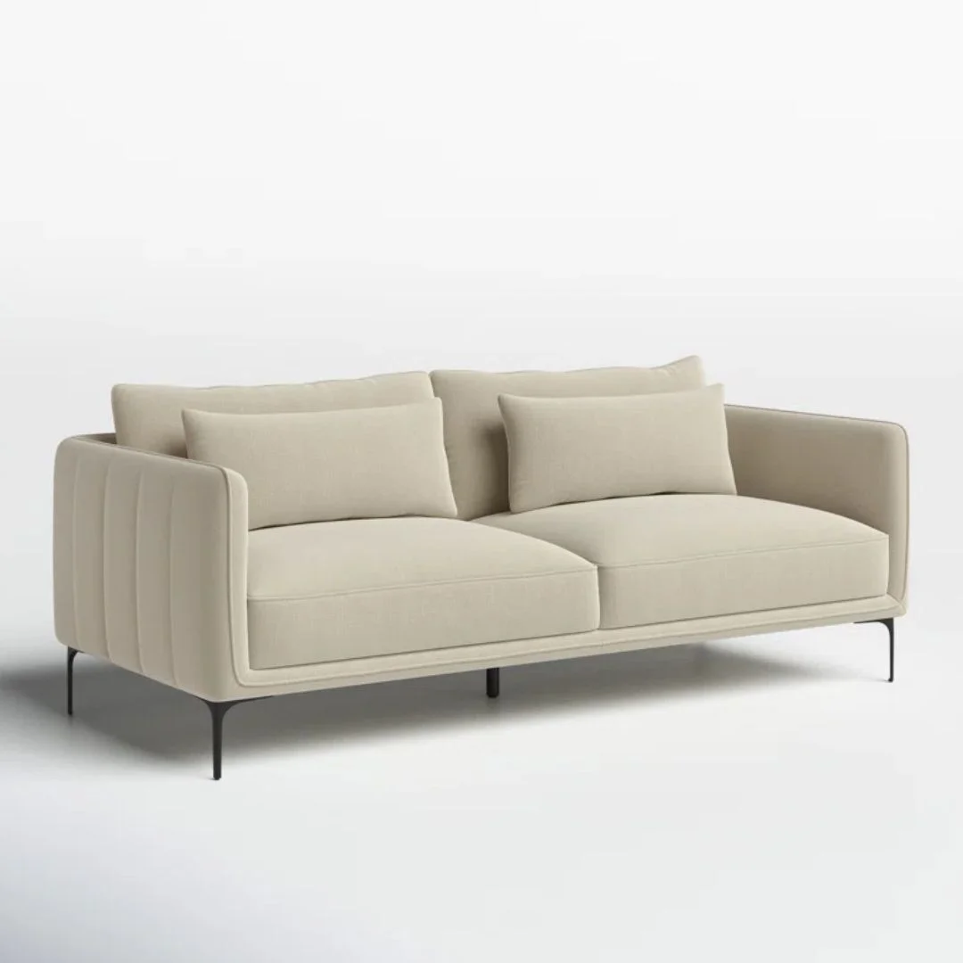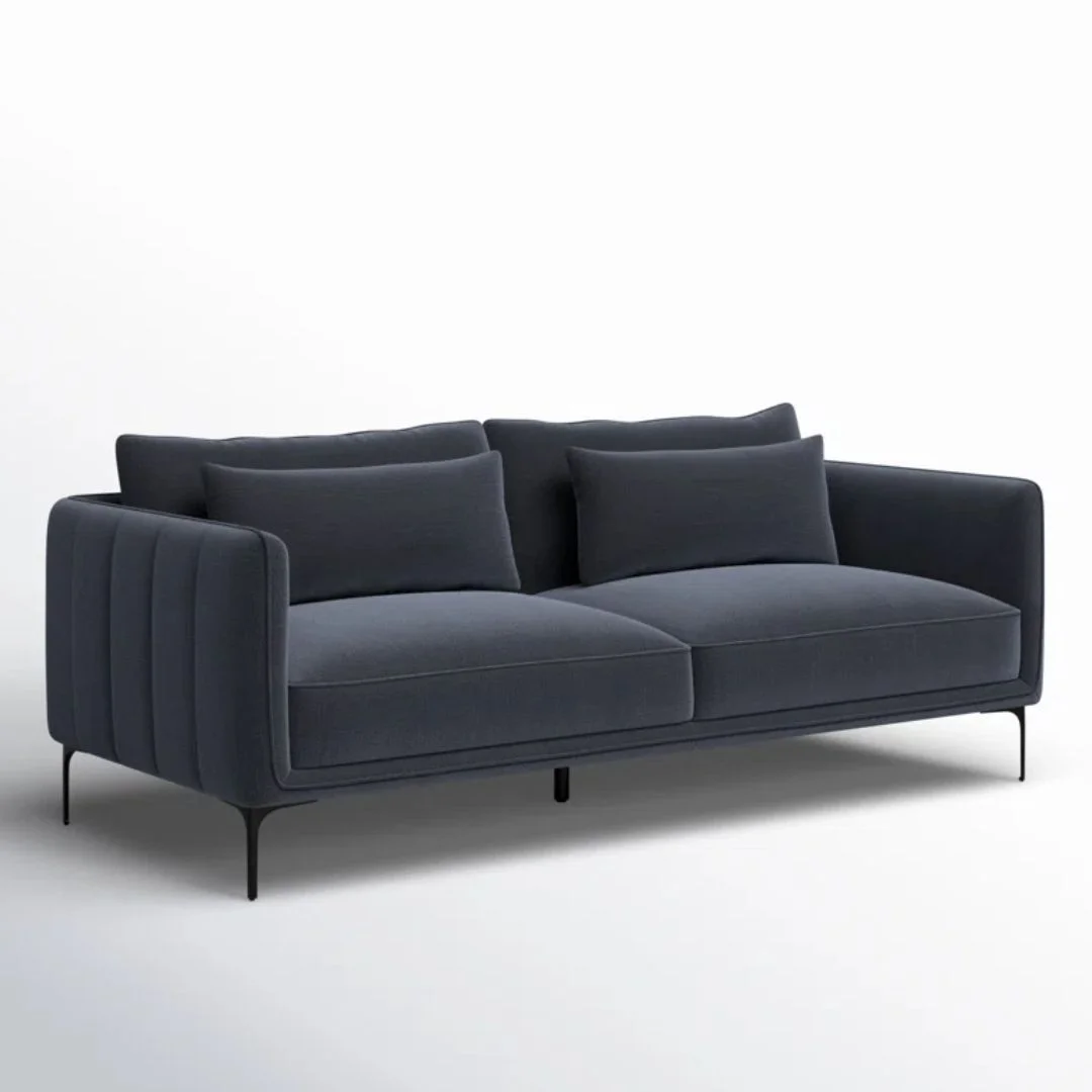 Elevated from every angle, this mid-century-inspired sofa showcases a sleek silhouette accented by vertical channel detailing + metal bracket legs. Tall arms + reversible down-blend cushions surround you in comfort, while a range of tailored upholstery options invite you to make it your own.