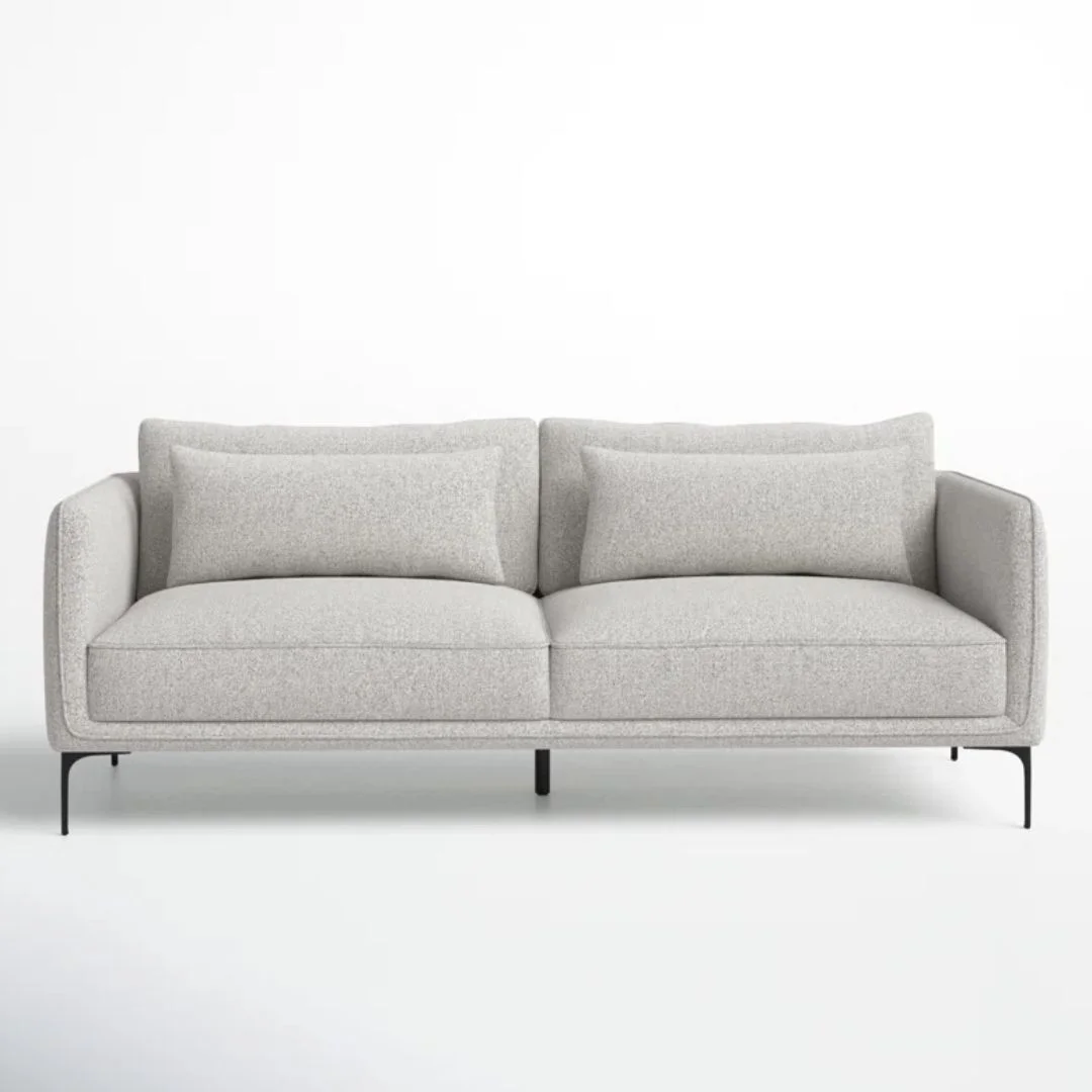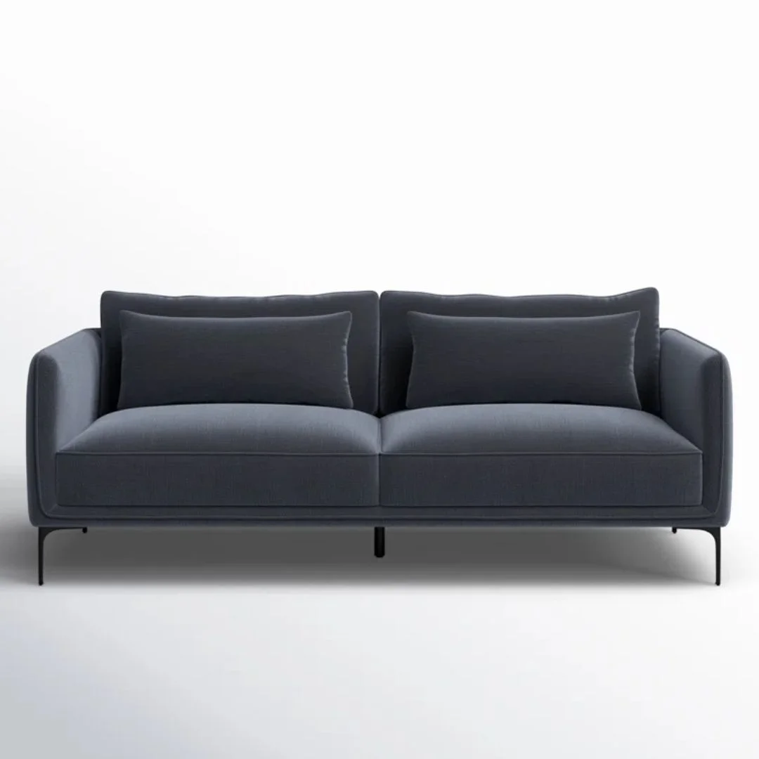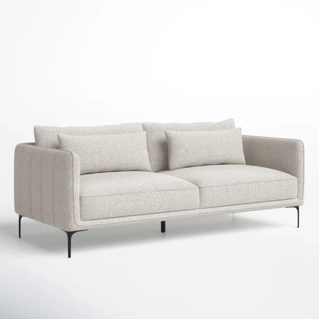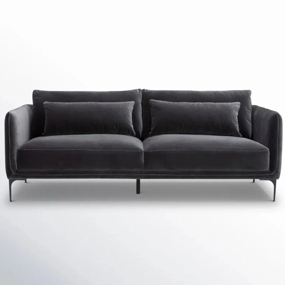 Elevated from every angle, this mid-century-inspired sofa showcases a sleek silhouette accented by vertical channel detailing + metal bracket legs. Tall arms + reversible down-blend cushions surround you in comfort, while a range of tailored upholstery options invite you to make it your own.
