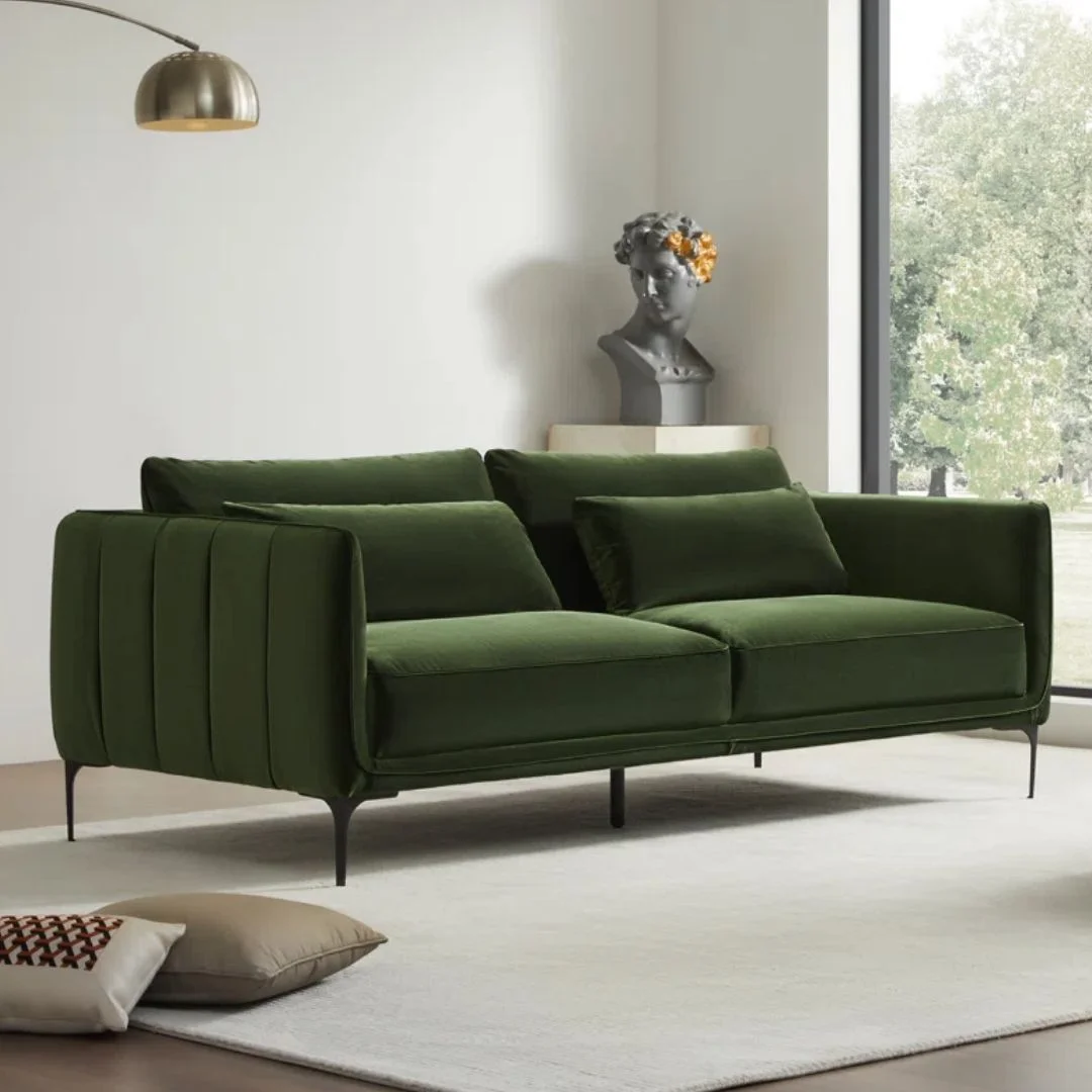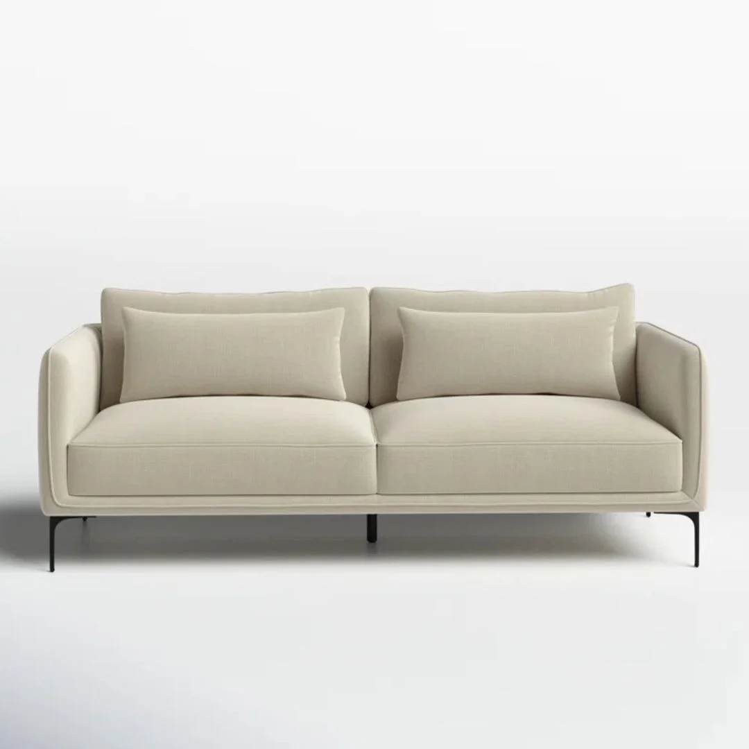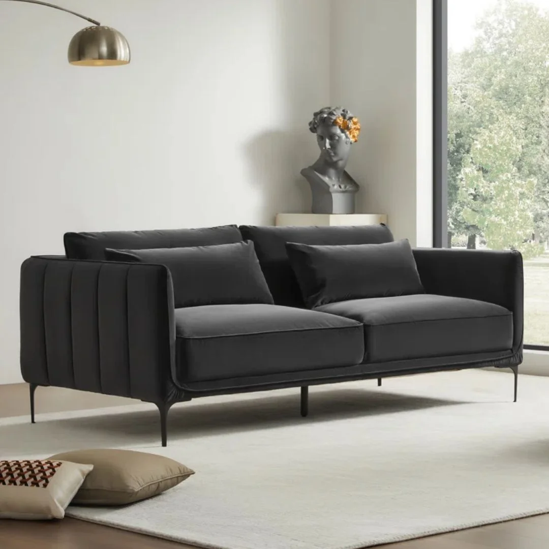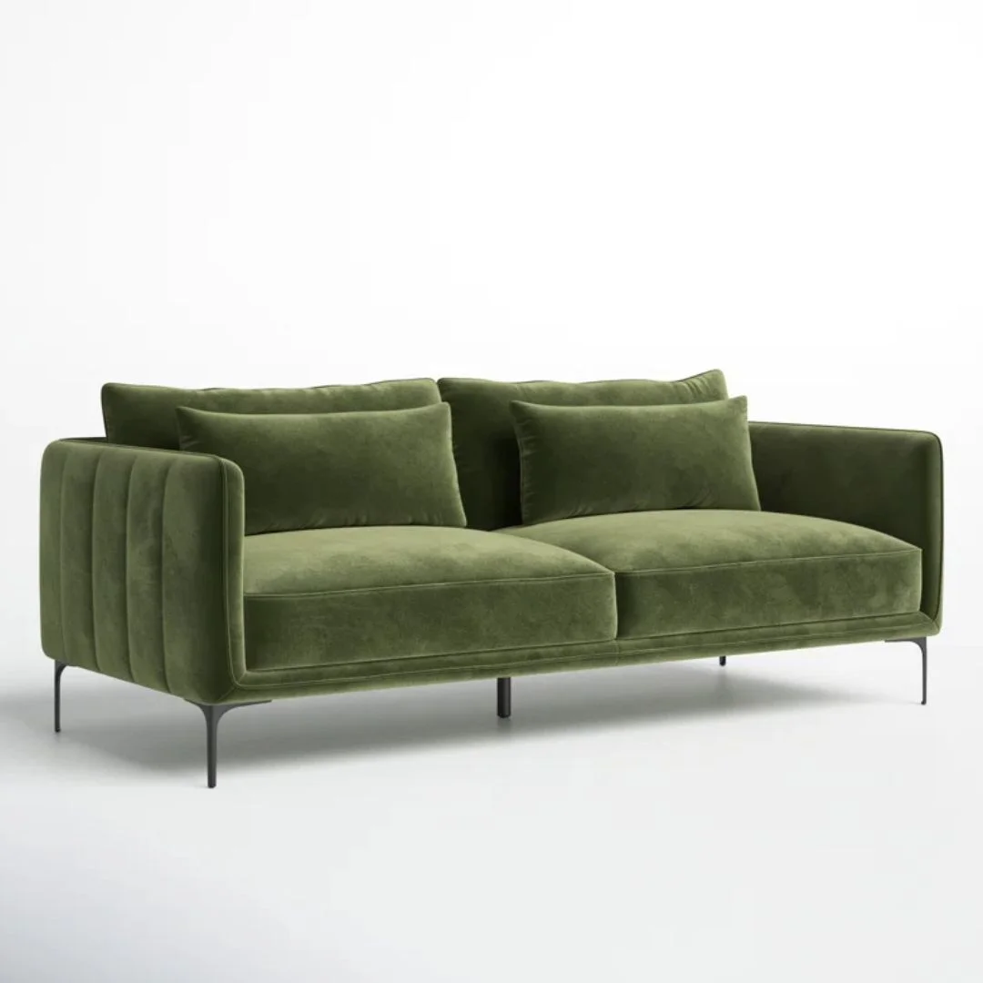 Elevated from every angle, this mid-century-inspired sofa showcases a sleek silhouette accented by vertical channel detailing + metal bracket legs. Tall arms + reversible down-blend cushions surround you in comfort, while a range of tailored upholstery options invite you to make it your own.